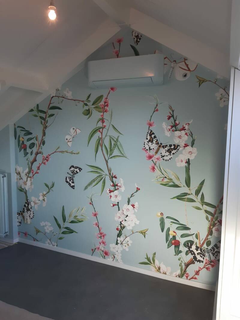 In samenwerking met Mandy van Brussel van Styling 22 uit Elst werken wij deze maand aan een heel mooi binnenproject in Oosterbeek. Onze behangspecialist Henk heeft deze prachtige muren gemaakt i.c.m. verf van Painting the Past.
